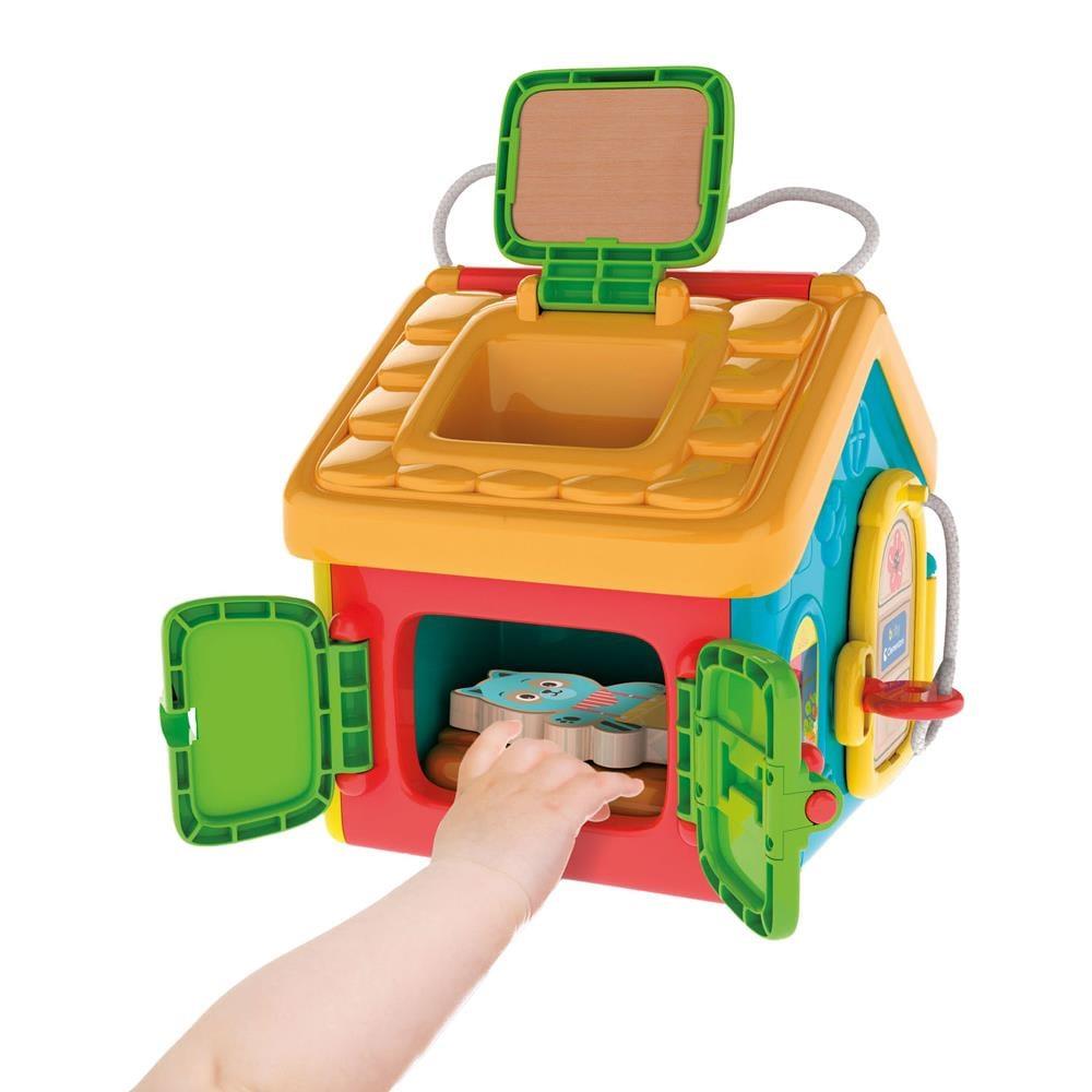 Montessori pedagojisinden ilham alan, birçok farklı aktiviteye ve oynanacak bir karaktere sahip bir oyun evi. Oyuncak, elin ince motor becerilerini geliştirmek için gerçek bir jimnastik salonu olmasının yanı sıra, çocuğa günlük nesneleri kullanmayı da öğretir. Çocuk, evin içini keşfetmek için tüm kapıları açıp kilitleri kullanarak pratik yapabilir. 12 aydan itibaren uygundur. Boyutu : 24 x 21 x 17 cm