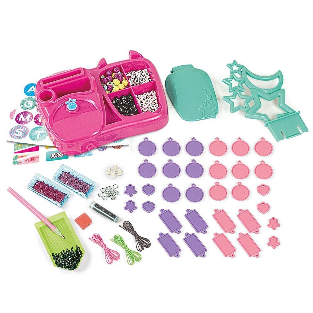 Tamamen yeni bir Crazy Chic seti, en son mücevher trendlerine ayak uydurmak için! Bu kit ile harfler, renkli boncuklar, güzel değerli taşlar ve elastik kordonlarla modaya uygun takılar ve aksesuarlar yapabilirsiniz. Oyun tabanı üç bölüme ayrılmıştır: renkli değerli taşlarla kolye uçlarını ve etiketleri süslemek için bir alan, boncukları ayırmak için bir bölme ve tüm kreasyonları saklamak için bir mücevher kutusu. Kutu Boyutu : 38.5 x 28.5 x 7.8 Cm