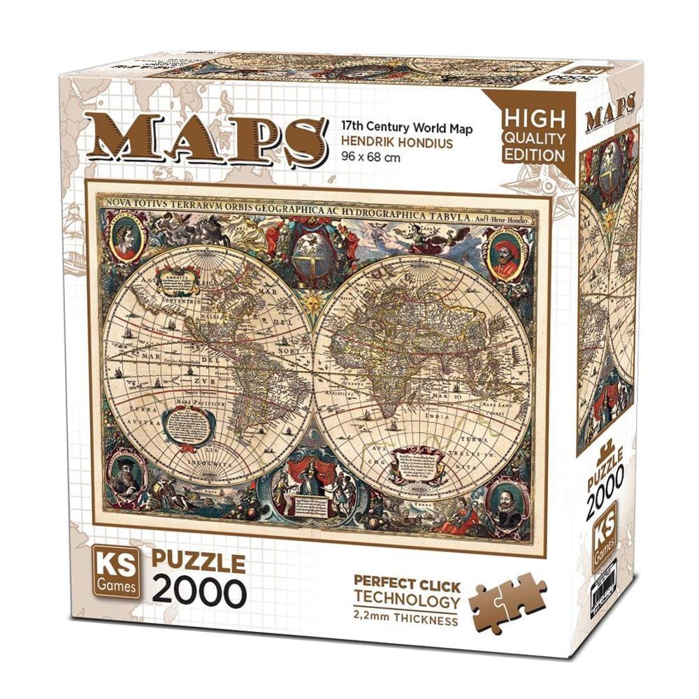 Ks Games Puzzle 2000 Parça Hendrik Hondius Vintage World Map 22529 (ONUR22529)