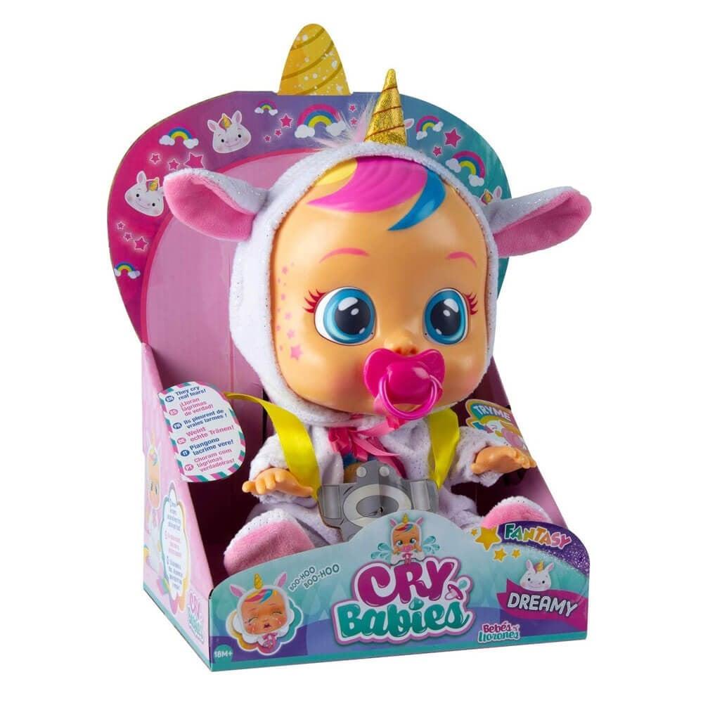 Cry Babies ailesinin yepyeni üyeleri Fantasy Serisi ile tanışma zamanı! Paci evlerinde mini bebekleri bulunan Dreamy, unicorn tulumuyla, Jenna Pegasus tulumuyla Tina ise mavi tulumuyla bu seride! Çocuklarla buluşmak için sabırsızlanıyor. Bu bebeklerin en büyük sürprizi emzikleri çıkarıldığında ortaya çıkıyor! Emzikleri çıkarıldığında gözyaşı dökerek ağlamaya başlıyorlar. Seslerini yükselterek içli ve bir o kadar da sevimli bir şekilde ağlayan bu sevimli bebeklerin ağlamalarını durdurmak için emziklerini takmak yeterli! Paketlerde 1 Bebek ve 1 Emzik bulunmaktadır. Pil dahildir. Yaş Grubu: 18 Ay ve üzeri