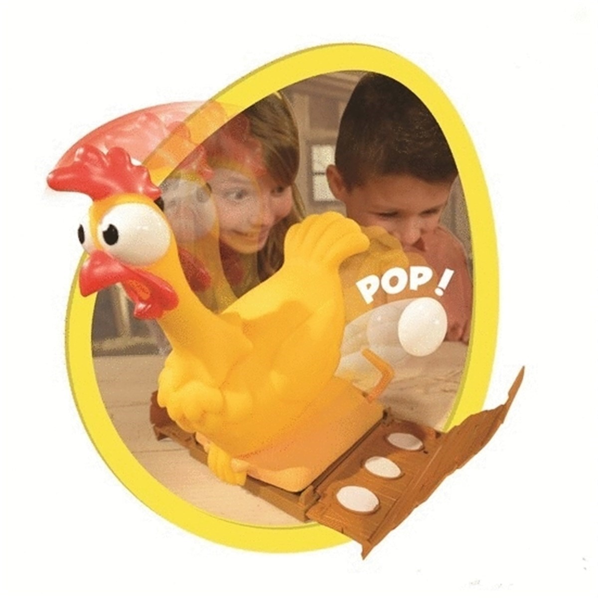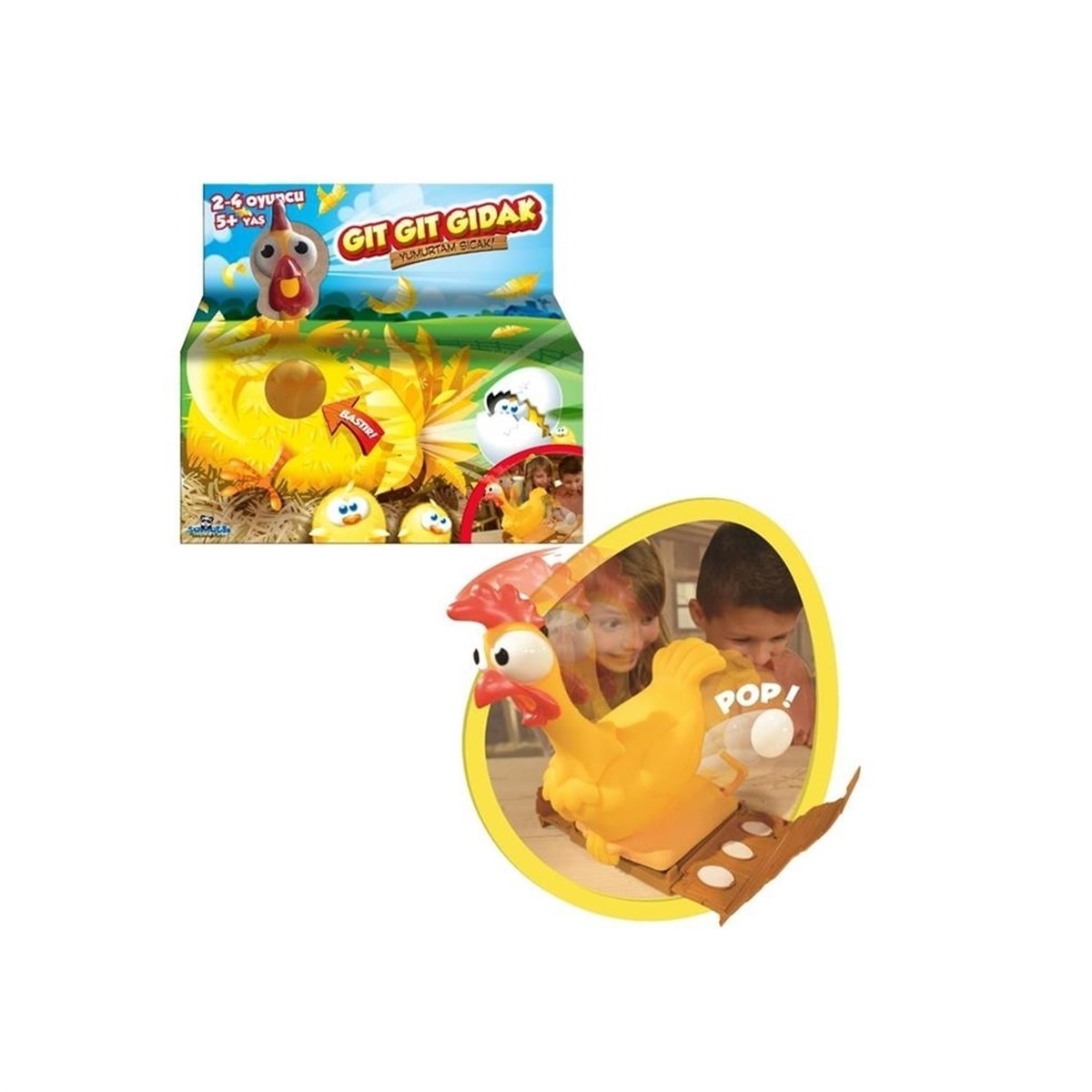 Bol kahkahalı yepyeni bir oyun. Bu şaşkın tavuk duyabileceğin en komik gıdaklama sesi ile herkesi yerinden zıplatıyor! Zarı at ve tavuğa zarda gelen sayı kadar bastır. Acaba kümes sıra kimdeyken açılacak? Kümes açılır da tavuk yumurtlarsa yumurtayı kır ve ne kazandığını gör!