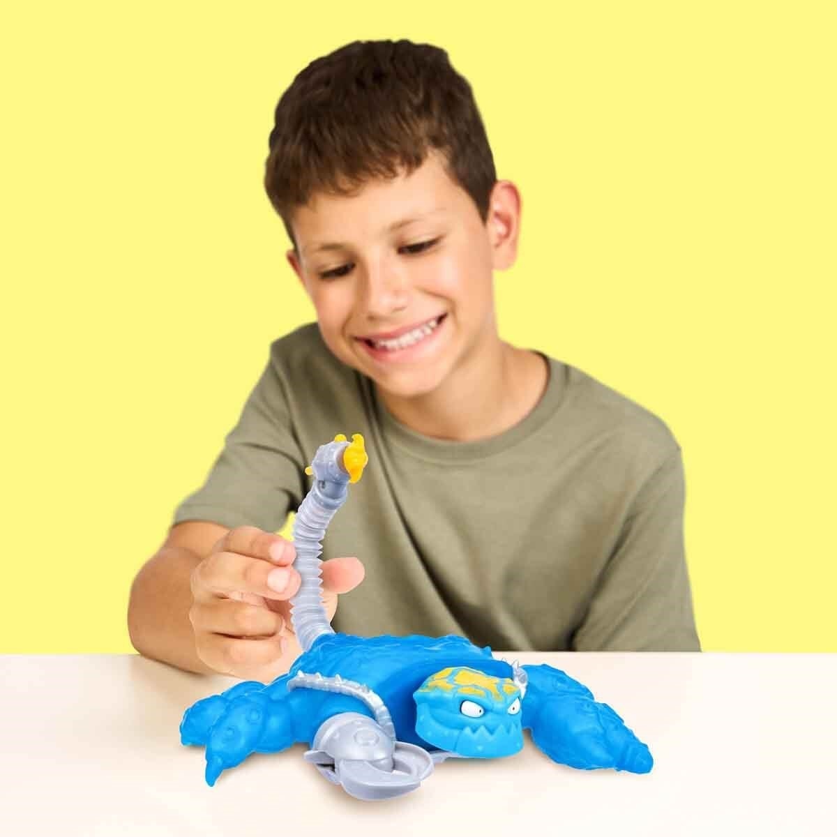Goojitzu’nun iyi ve kötü kahramanları kendi aralarında kıyasıya süren mücadeleler sergilesin. Bu savaşın kazananı Meteor Madness evreninin güçlü karakteri Hydro-Sting Akrep’tir! Diğer figürler gibi savaş aksesuarlarına ya da güçlü yumruklara ihtiyacı yok; çünkü o doğuştan savaşçıdır. Doğanın en tehlikeli canlılarından akrep, Goojitzu evreninde son sözü söylemek için geliyor. Özel dolgusu sayesinde gücünü önce kendi içinde buluyor ve çift saldırı modu ile hem yakın hem de uzak menzilden hamlelerini yaparak heyecan dolu oyunlar vadediyor!