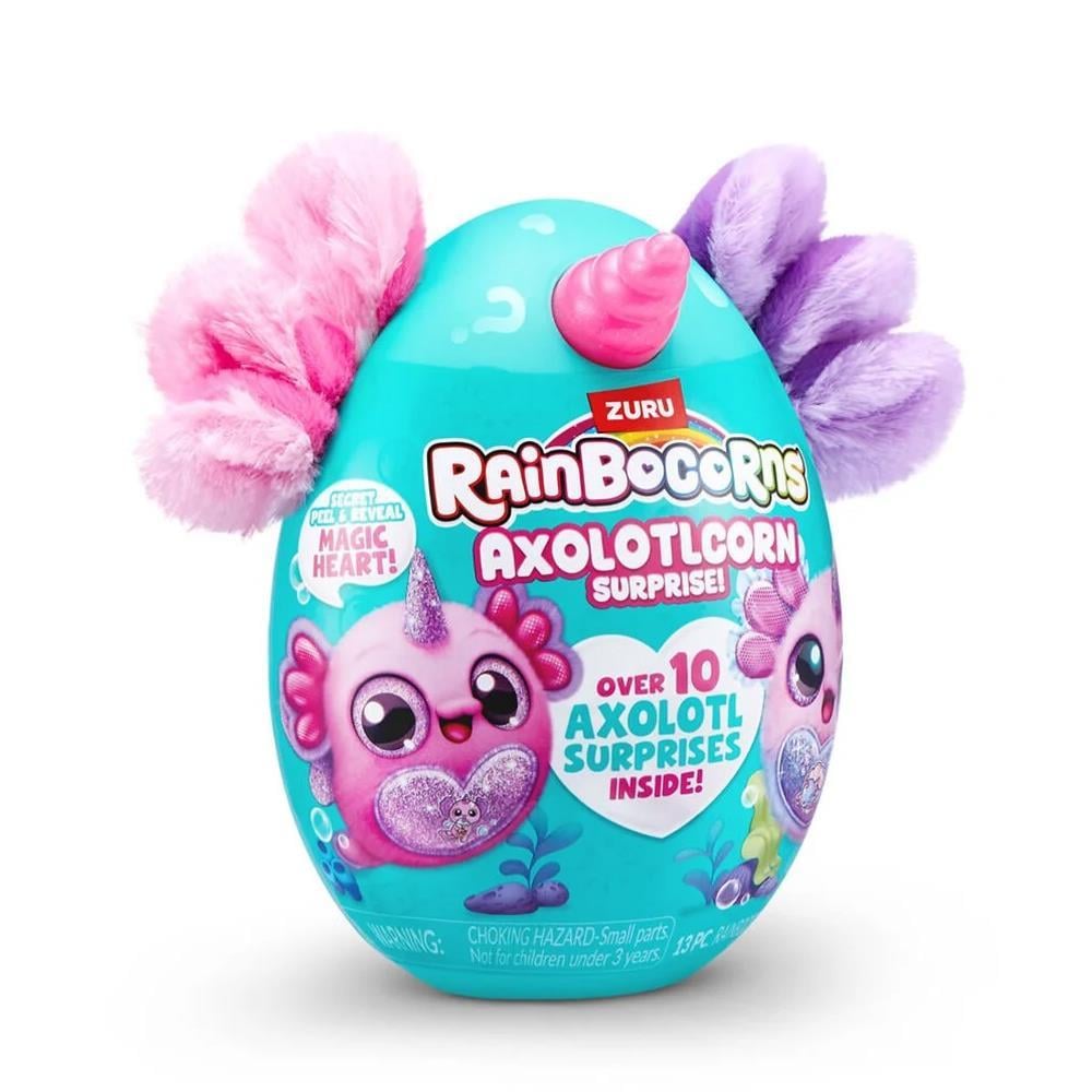 -Rainboville’in sevimli mi sevimli üyesi Axolotlcorn ile tanışma zamanı -Rainbocorns Axolotlcorn Sürpriz kutusunda yumuşacık bir pelüş Axolotlcorn ve toplam 10 farklı sürpriz bulunuyor. -Kutudan ayrıca sevimli Boo-Boocorn figürü ve eğlenceli aksesuarlara da ulaşılabiliyor. -Sürpriz yumurta kırılarak keşif heyecanı başlıyor ve çocuklar yepyeni aksolotl arkadaşlarını oyunlarına dahil ediyor. -Turuncu, Beyaz, Yeşil, Mor, Sıcak Pembe ve Alacalı Pembe olmak üzere 6 asortiden oluşan paketlerde bir adet Rainbocorns Axolotlcorn pelüş, iki adet sürpriz yumurta, bir adet Boo-Boocorn figürü, bir adet Rainbocorns slime, bir adet koleksiyon rehberi ve yedi adet sticker bulunuyor. -Koli ölçüsü: 24,5x46,5x43 -Yaş bilgisi: 3+
